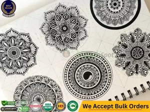 Each piece features intricate mandala and elephant motifs, combined with mandalas with flowers for a unique artistic expression. Our artists use specialized mandala art supplies and mandala art pens to create colorful mandala art that transforms your space.