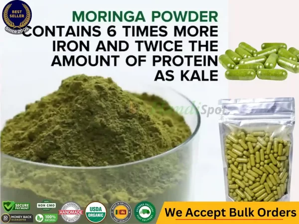 Experience the finest Moringa Leaf Capsules and organic moringa powder from Ceylon. Our premium moringa supplements, best moringa powder, and authentic moringa leaf tea deliver natural wellness. For bulk orders or customization, contact us via WhatsApp or email (in**@*******ot.com).