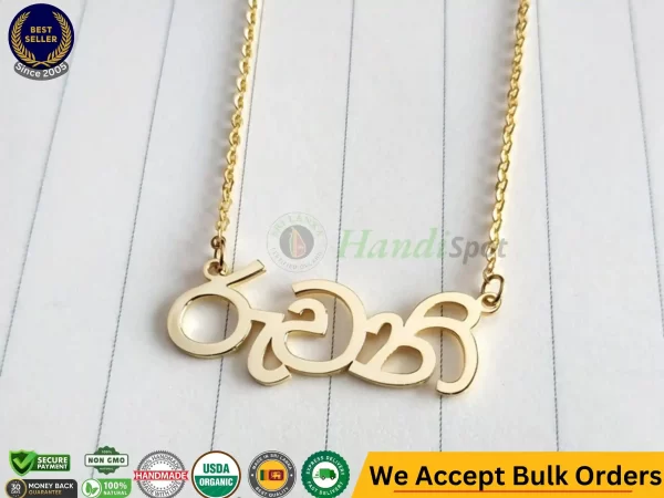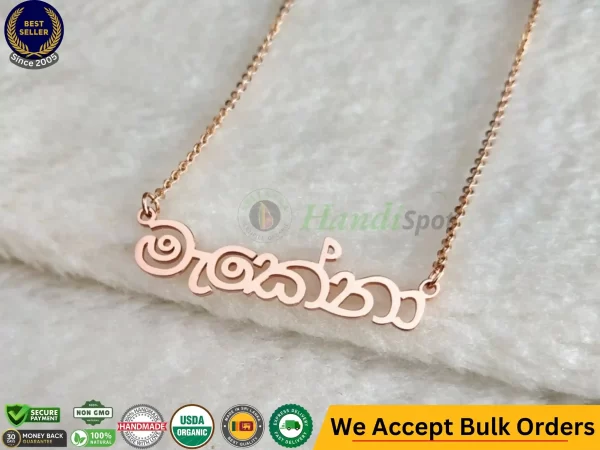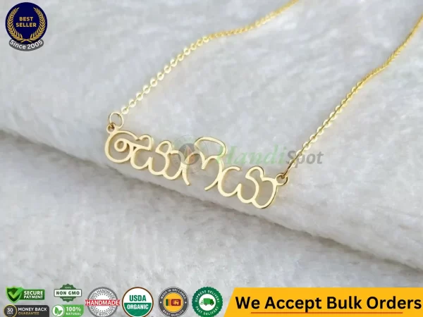 A: We offer gold name necklace, name necklace silver, and gold plated options crafted by our skilled Sri Lankan artisans.